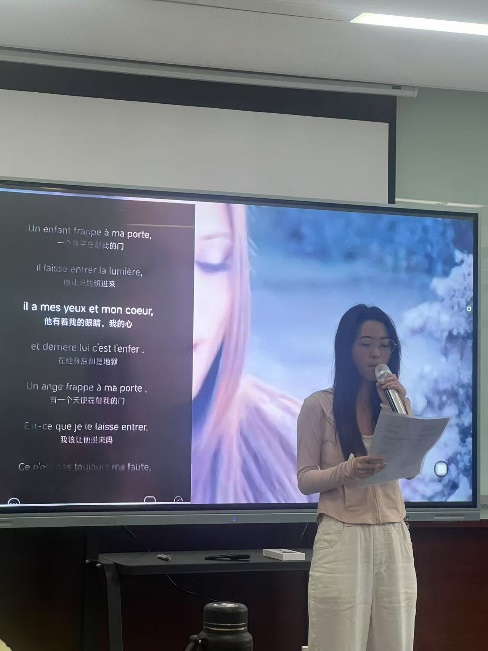 本次沙龙涉及的著作是《天朝遥远》。该著作在一般社会想象意义上研究西方的中国形象,在七个多世纪的中国形象史中,以启蒙运动高潮为分界点,建构出此前不断乌托邦化的三种中国形象类型和此后系统意识形态化的三种中国形象类型。别老师以此书为引,剖析西方视域下的中国形象变迁,从历史误读探讨当代跨文化对话的突破路径。研二施佳雯同学结合此书分享了她的阅读报告,对比中西文明认知差异,引发师生热议。刘彤同学则以法语倾情演绎歌曲,发音精准、情感充沛,获音乐麻豆成人网周老师的连连称赞。